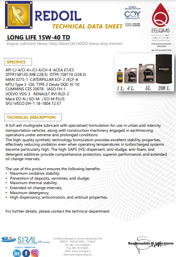 LONG LIFE 15W-40 TD